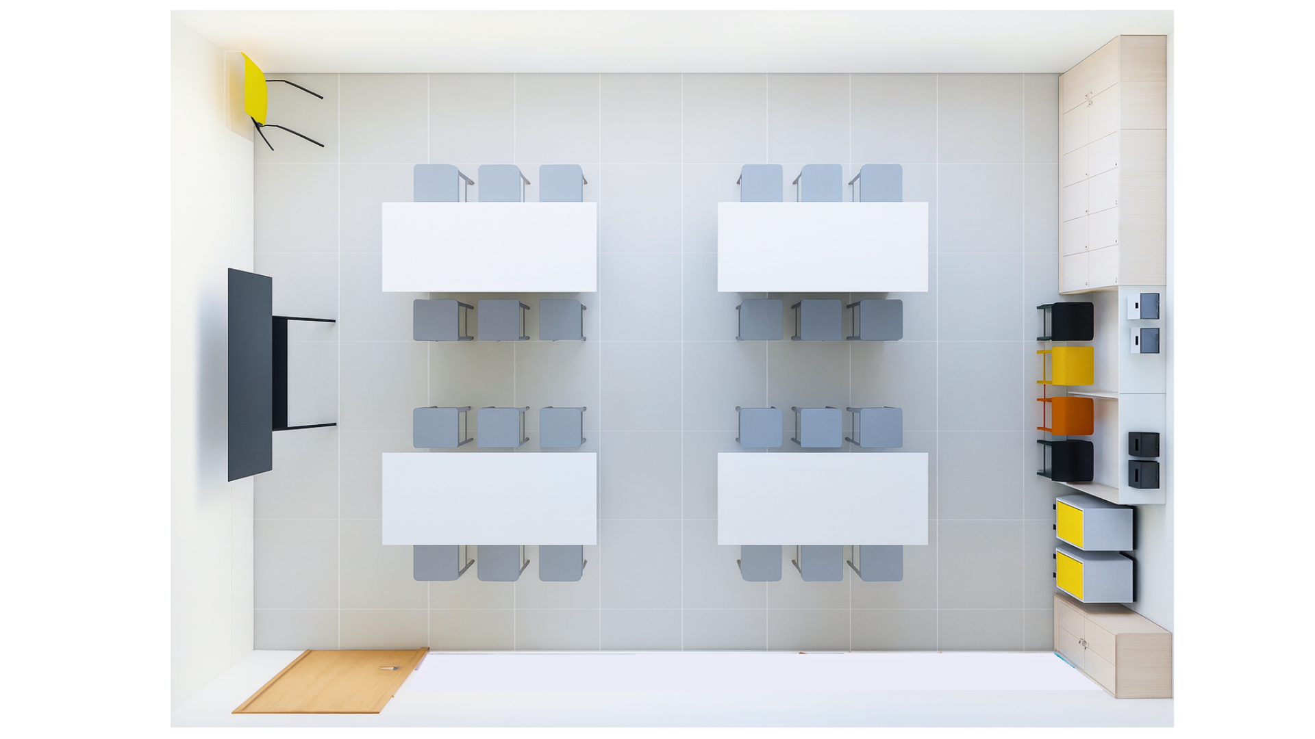 Organização inteligente para armazenar ferramentas, componentes e materiais didáticos.